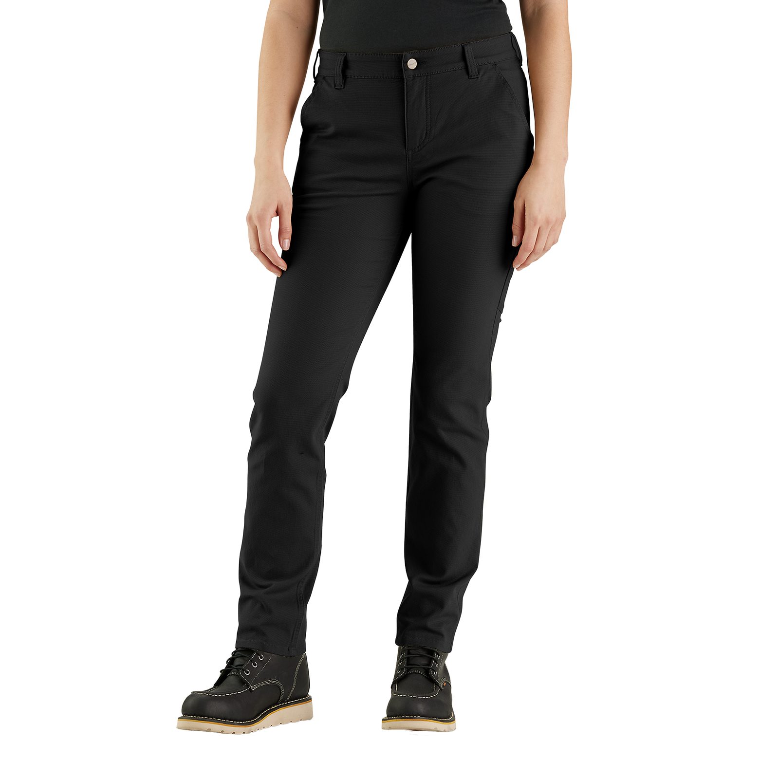 Tyto dámské pracovní kalhoty jsou ušity z odolné plátěné tkaniny Carhartt střední gramáže s integrovanou pružností a elastickým pasem, které zajišťují volnost pohybu a pohodlí. Součástí řady kapes je i praktická kapsa na nohavici. Volný střih lépe přiléhá k tělu v oblasti sedací části a stehen, přičemž ponechává dostatek prostoru pro pohyb.